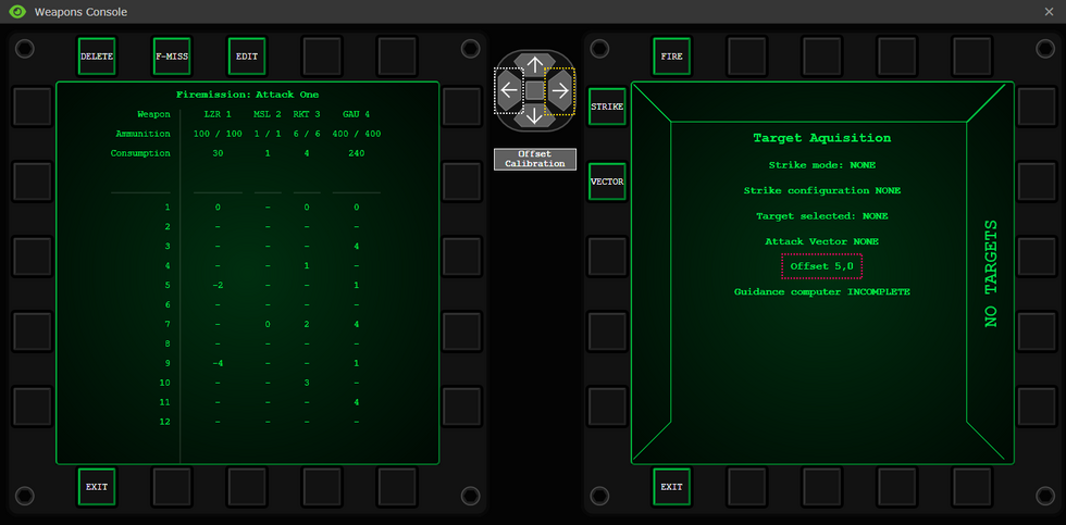 • Синий - F-MISS (Огневая поддержка): Просмотр, редактирование, создание и удаление конфигураций огневых миссий.