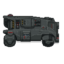 A repurposed civilian truck, plastered with CLF emblems and insignias. Armor plates have been attached on all sides, including the front windows. Bulletholes riddle the vehicle. There are some vehicle wheels modules installed.